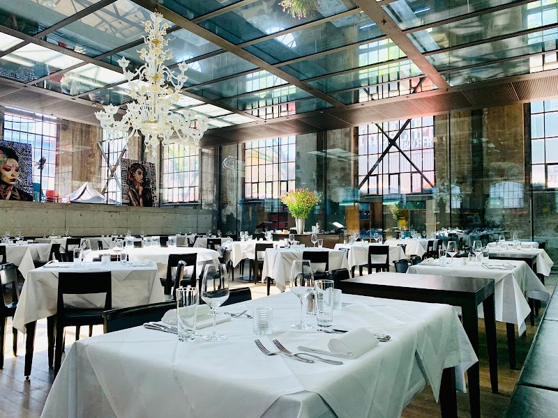 ReservierbarVegetarischPrächtiges, verglastes Restaurant mit Bar in einer ehemaligen Werft mit französischer und italienischer Küche.