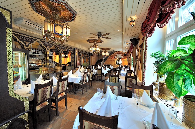 ReservierbarTraditionelle kleinere Gerichte und Grillfleisch in elegantem Restaurant mit orientalischem Dekor.