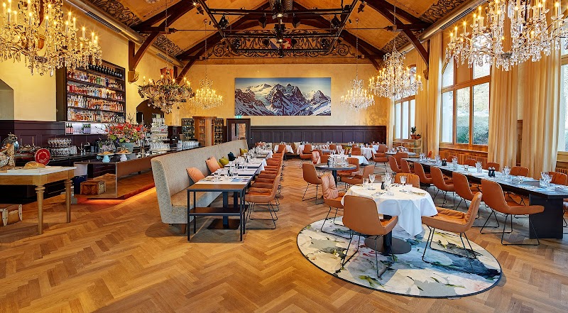 ReservierbarVegetarischRestaurant im Landhausstil mit traditionellen und modernen Schweizer Gerichten und einem Garten auf einem Hügel.